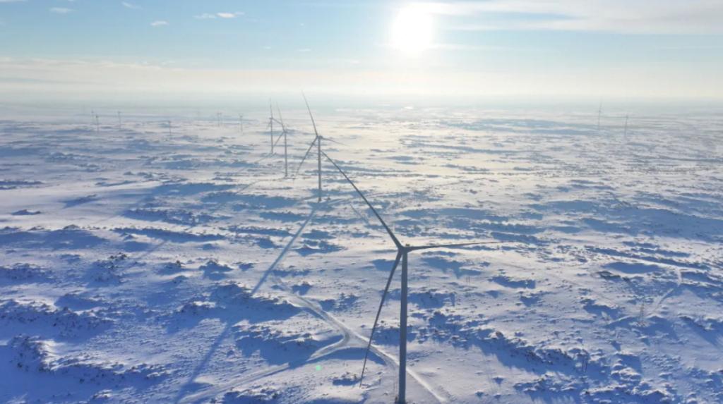该项目位于新疆阿勒泰地区布尔津县,装机容量为100万千瓦,共安装103台东方电气自主研制的大容量豪门国际机组,包括85台10兆瓦风机,18台8.35兆瓦风机。项目创新应用160米桁架塔,为低风速、高风切变区域的风能开发储备了关键技术。